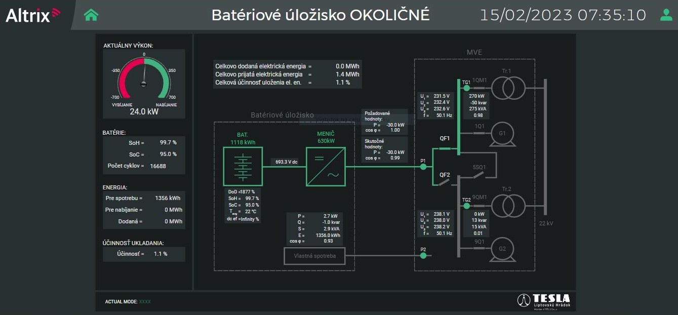 Das Unternehmen TESLA Liptovský Hrádok (Slowakei) lieferte für das Kleinwasserkraftwerk Okoličné in Liptovský Mikuláš (Slowakei) ein Batteriespeichersystem mit einer Kapazität von 1.118 kWh und einer Leistung von 550 kW.