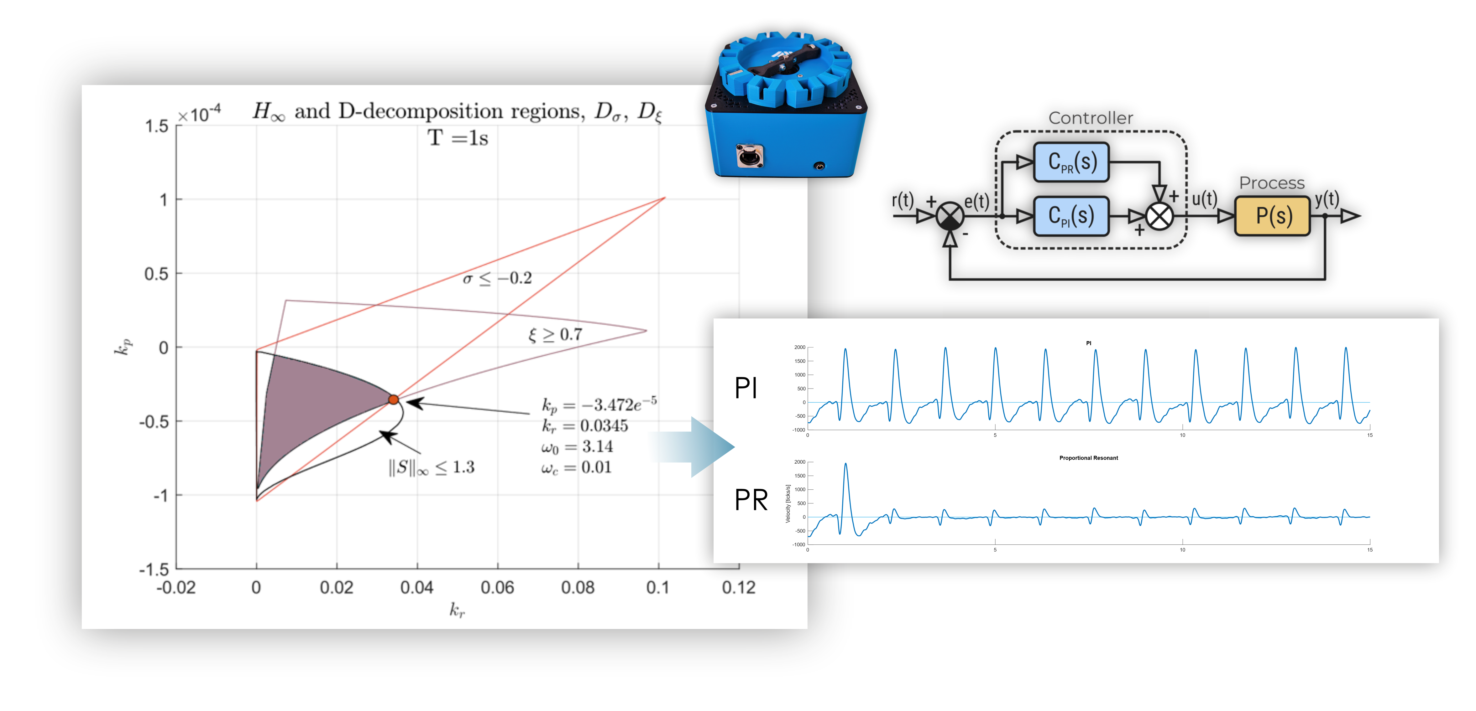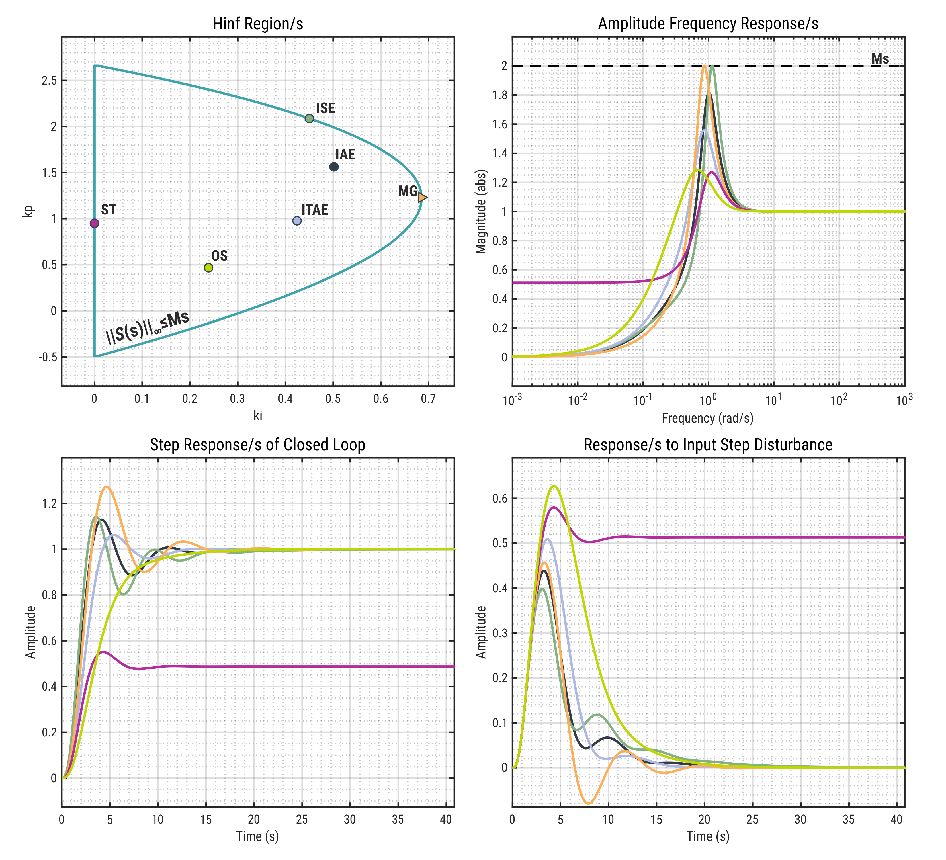 Im Gegensatz zu herkömmlichen Entwurfsansätzen, die auf numerischer Optimierung beruhen, verwendet diese Methode ein analytisches Berechnungsverfahren, das verschiedene H∞-Entwurfsbedingungen in einen Bereich in der Parameterebene des Reglers überführt.