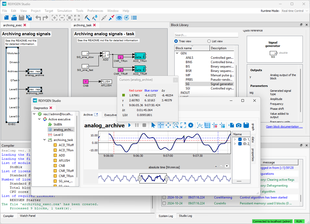 REXYGEN ist unser Flaggschiffsoftwareprodukt. Es vereint zwei Jahrzehnte Forschung und Entwicklung im Bereich Automatisierung und Regelungstechnik. REXYGEN bietet grafische Programmierung von Steuerungsalgorithmen mittels Funktionsblöcken, sequenziellen Funktionsdiagrammen und programmierbaren Funktionsblöcken. Außerdem stellt es Werkzeuge zur Verfügung, um einfache webbasierte Mensch-Maschine-Schnittstellen (HMI) zu erstellen.